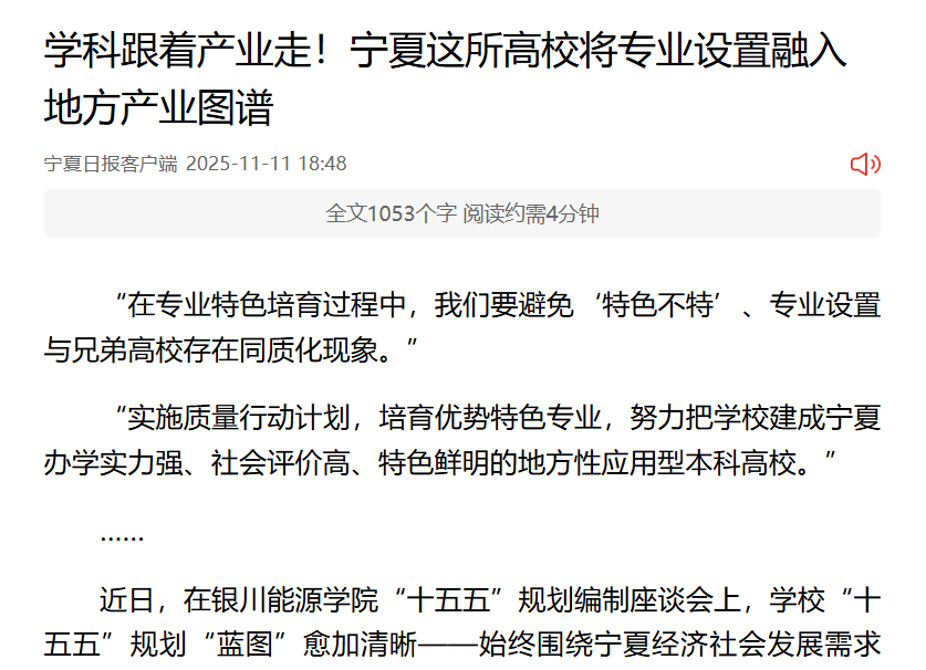 宁夏日报 | 学科跟着产业走!宁夏这所高校将专业设置融入地方产业图谱