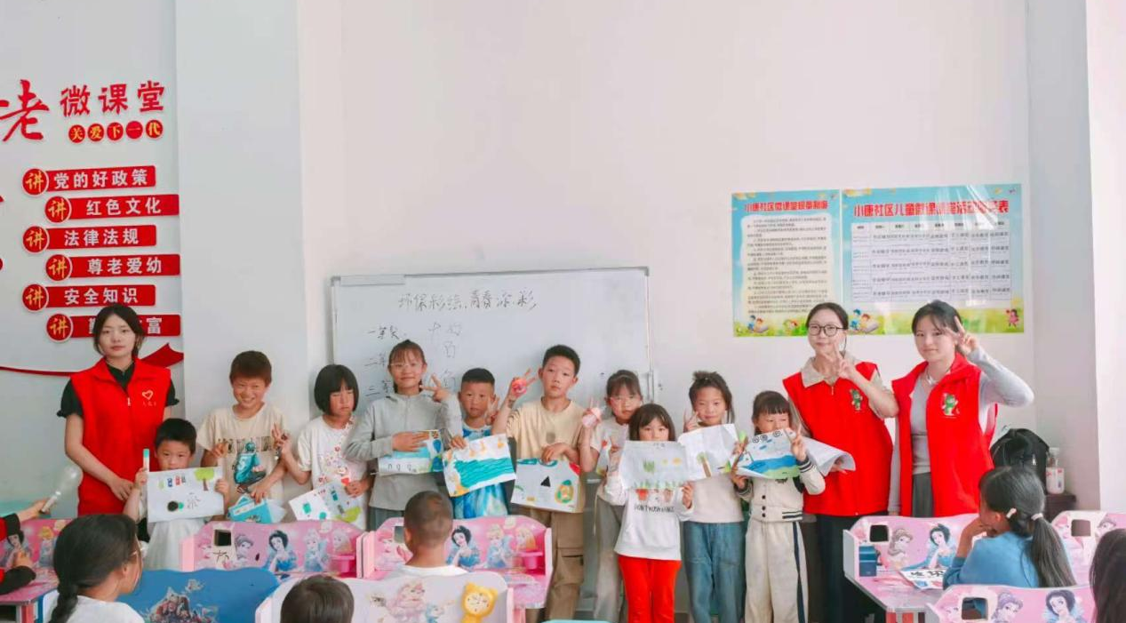 在“老微课堂”里,志愿者们与孩子们围绕“环保彩绘,青春添彩”主题互动,引导孩子用画笔描绘对美好家园的想象。志愿者们不仅教孩子们绘画技巧,还融入环保知识讲解,用耐心与爱心在孩子们心中播下热爱艺术与环保的种子。