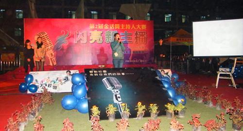 驰骋青春华丽舞台,放飞年轻金色梦想。12月5日晚六点,五月花专修学院第二届"金话筒"主持人大赛决赛在感恩广场如期举行。团结校区院长徐春芳、执行院长陈晓辉等领导到场观看。通过初赛与复赛的层层选拔,全院共有12名选手脱颖而出,在决赛的赛场上一展风采。本场比赛分为三个环节:自我亮相,自备主持,即兴搭档。第.