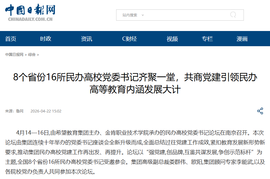 中国日报网 | 8个省份16所民办高校党委书记齐聚一堂,共商党建引领民办高等教育内涵发展大计