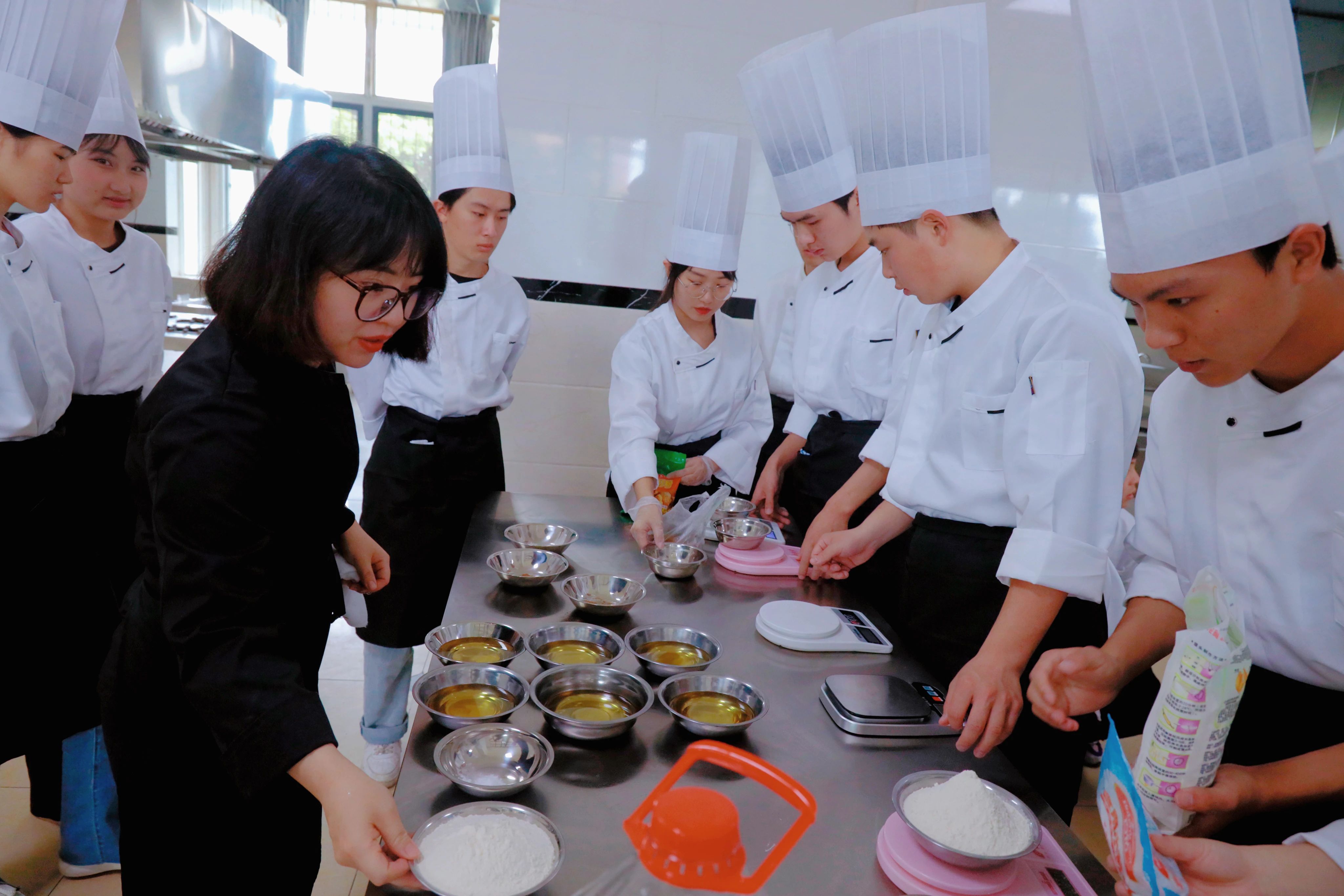 冻过的鸡蛋要搅拌到没有颗粒,面粉250克、花生油100克,黑芝麻不着急,最后放即可?......”烹饪工艺与营养专业教师邱梦玲耐心地向学生边讲边演示如何制作甜品桃酥。
