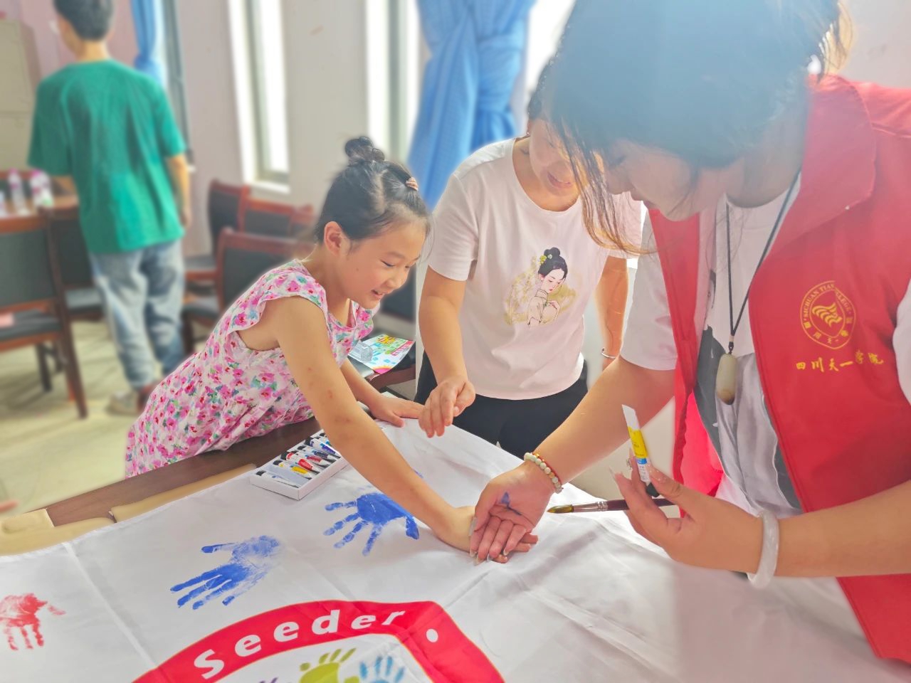 暑假期间,吕玥瑶深入学校所在地的檀兴社区参与社会实践活动。从协助社区进行农户排查,到对关心关爱社区老人,从倾听老人讲述过往厚重的故事,再到指导孩子们进行手工制作与绘画......每一件看似微不足道的小事,在吕玥瑶的心中都闪耀着非凡的光芒,是高温天气下,队员们没有放弃也没有任何抱怨,始终相互鼓励的坚持和责任;是组织绘画时,小朋友父母对活动内容和团队的支持和赞赏;是与小朋友的相处中,被一张张笑脸所打动,仿佛回到了童年时光的天真与快乐;是遭遇困难时,社区工作人员及时给予的帮助和照顾。