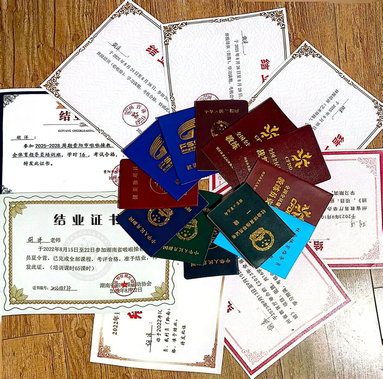 为提升专业能力,胡洋积极参与省市级以上培训,先后获得啦啦操、健美操等多类裁判员及教练员资质,并将前沿知识融入课堂,推广新周期操舞套路。同时,她主动参与社会服务,2023年带领学生参加黔南州惠水县女子篮球邀请赛,2024年担任惠水县职工杯广播体操比赛裁判,为校地体育交流与地方体育事业发展贡献力量。