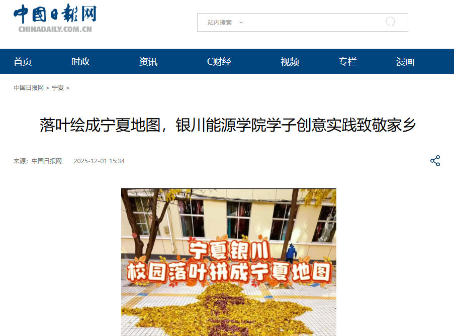 中国日报网 | 落叶绘成宁夏地图,银川能源学院学子创意实践致敬家乡