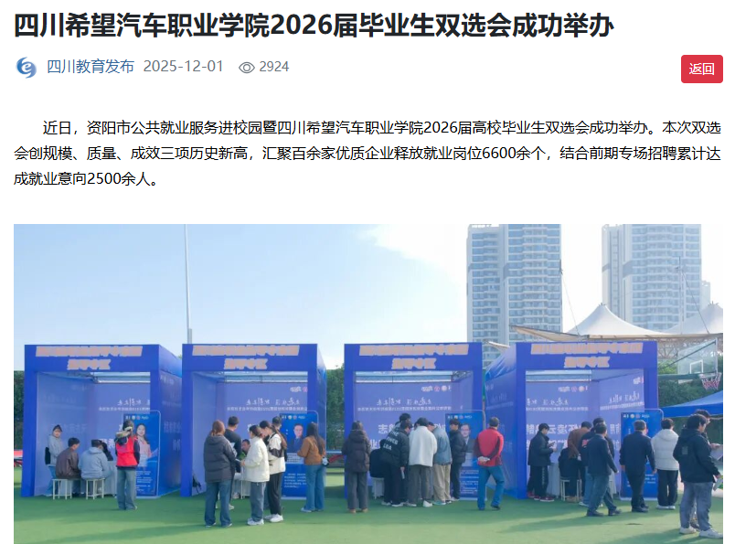 四川教育发布 | 四川希望汽车职业学院2026届毕业生双选会成功举办