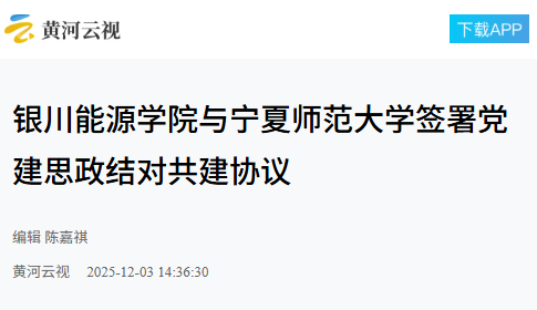 黄河云视 | 银川能源学院与宁夏师范大学签署党建思政结对共建协议