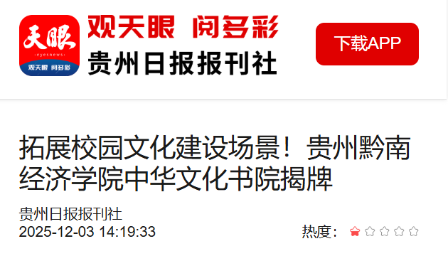 天眼新闻 | 拓展校园文化建设场景!贵州黔南经济学院中华文化书院揭牌