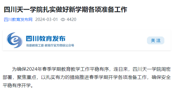 四川教育发布 | 四川天一学院扎实做好新学期各项准备工作