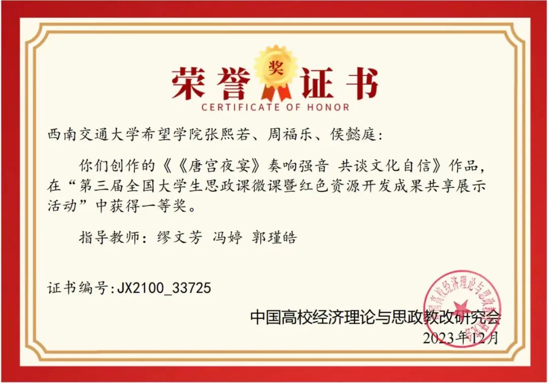 西南交通大学希望学院学子参加第三届全国大学生思政课微课暨红色资源开发成果共享展示活动获奖