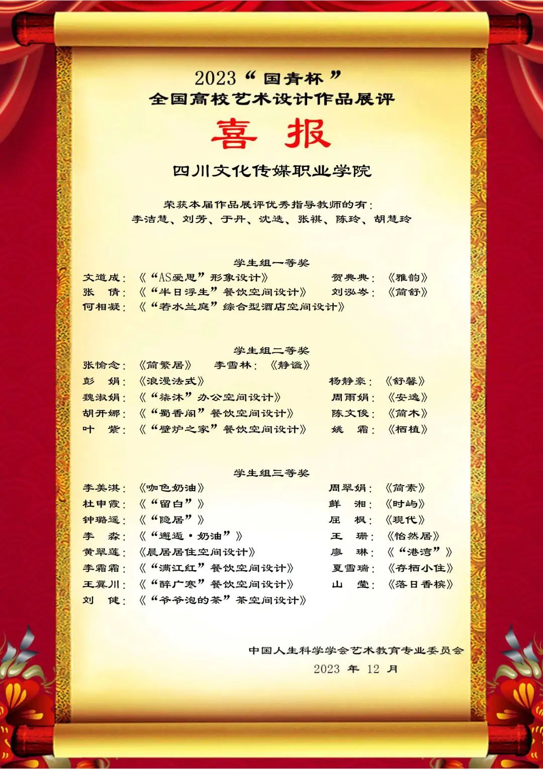 四川文化传媒职业学院学子参加2023年“国青杯”全国高校艺术设计作品大赛获奖