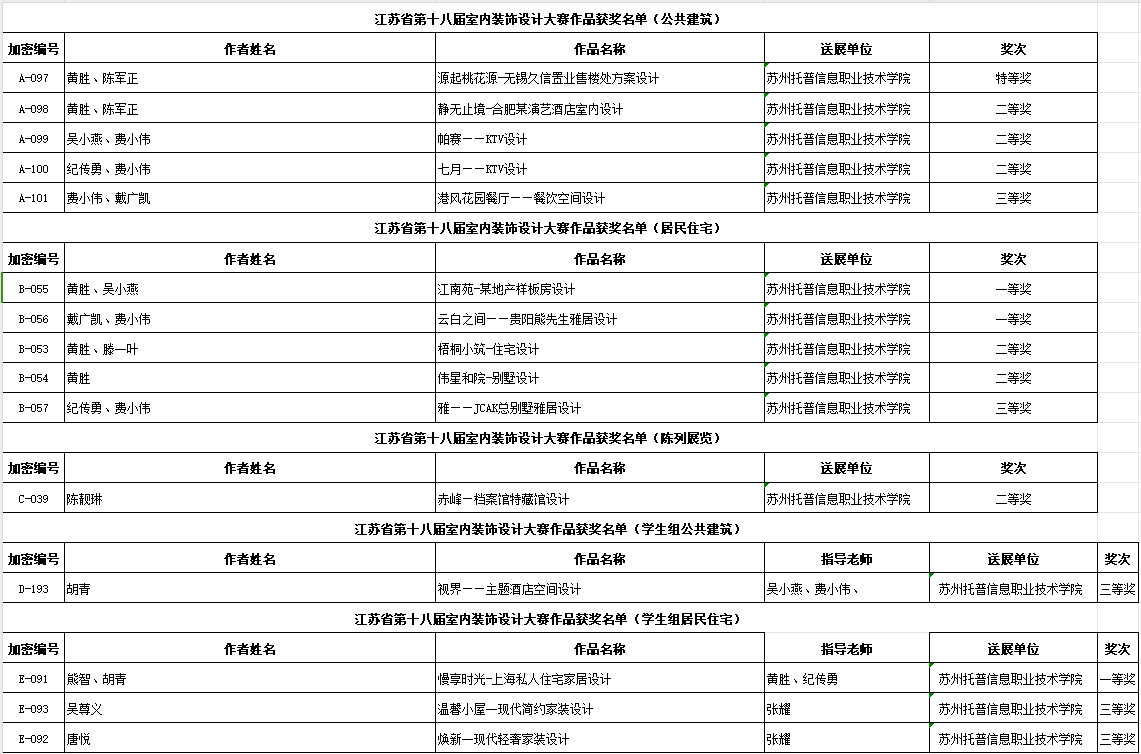 祝贺!苏州托普在江苏省室内装饰设计大赛中获奖15项