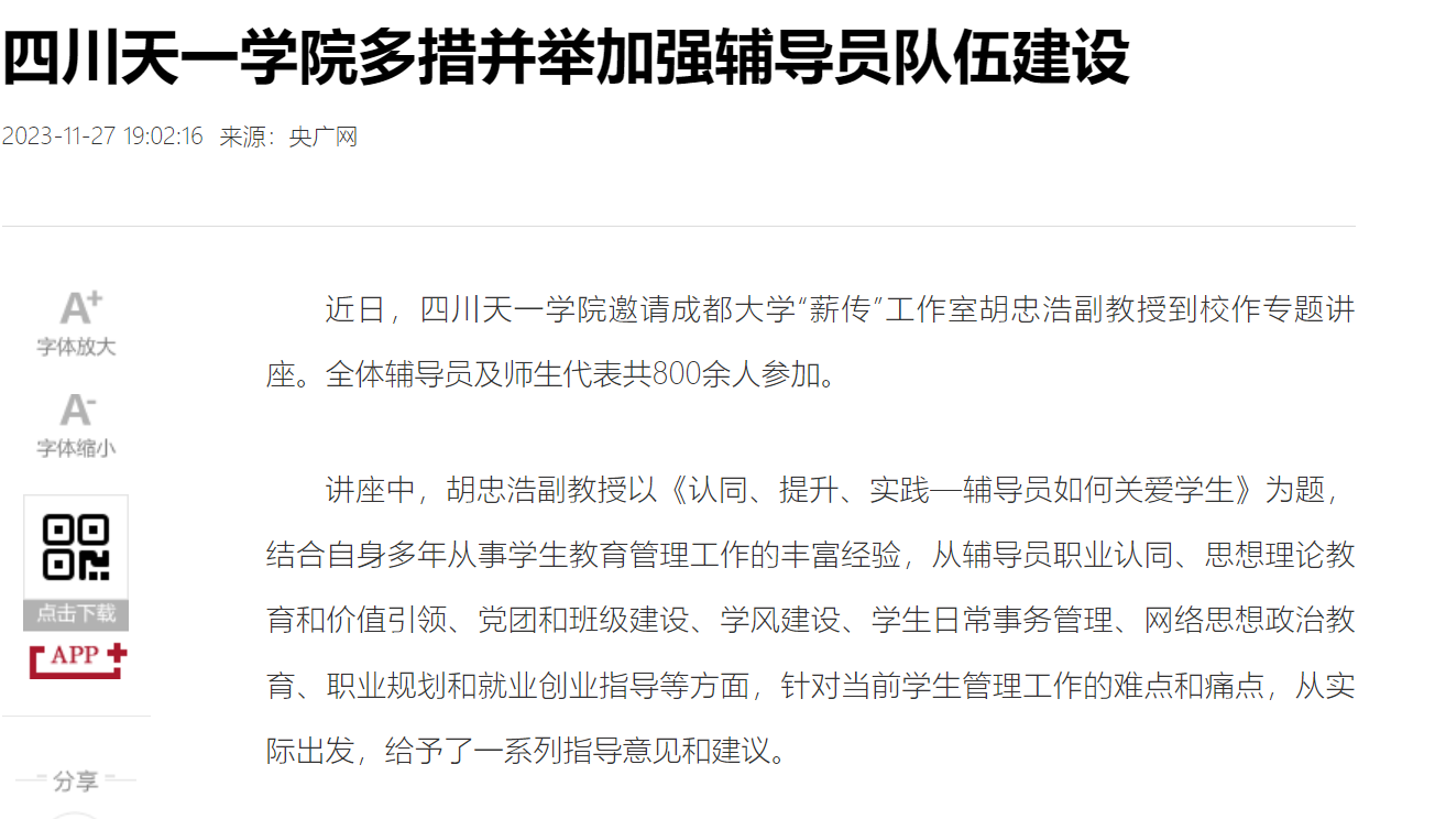 央广网 | 四川天一学院多措并举加强辅导员队伍建设