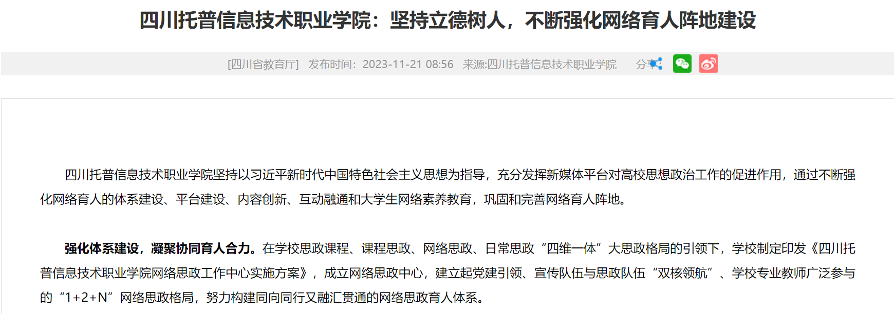 四川省教育厅 | 四川托普信息技术职业学院:坚持立德树人,不断强化网络育人阵地建设