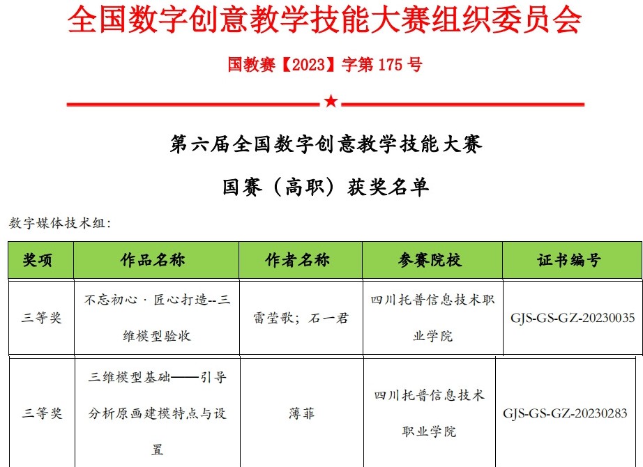 四川托普教师获第六届全国数字创意教学技能大赛三等奖