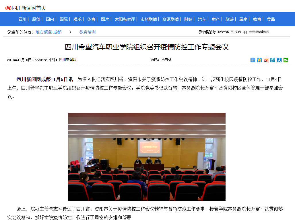 四川新闻网 | 四川希望汽车职业学院组织召开疫情防控工作专题会议