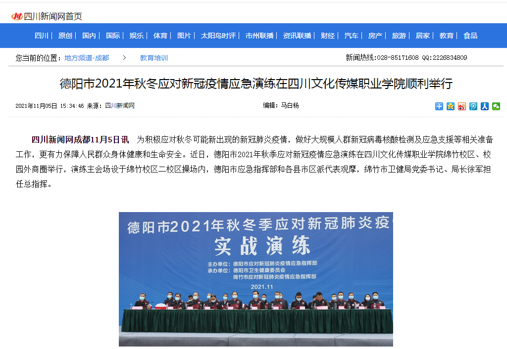 四川新闻网 | 德阳市2021年秋冬应对新冠疫情应急演练在四川文化传媒职业学院顺利举行