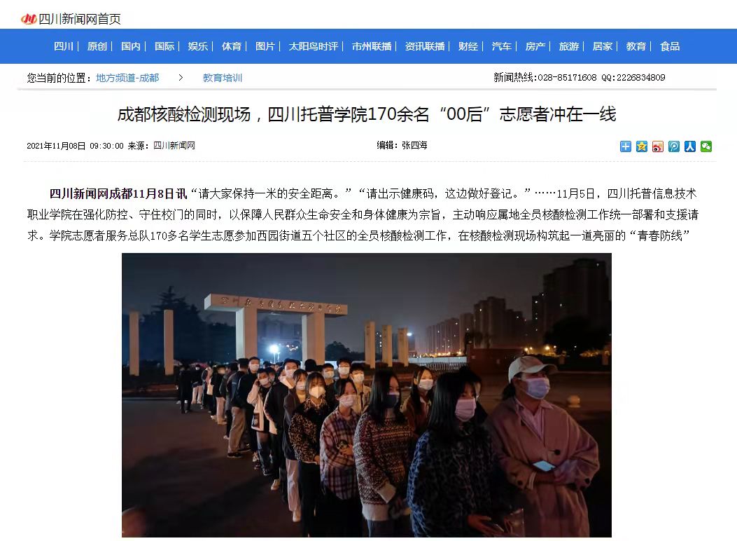 四川新闻网 | 成都核酸检测现场,四川托普学院170余名“00后”志愿者冲在一线