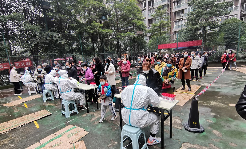 成都核酸检测现场,四川托普学院170余名“00后”志愿者冲在一线
