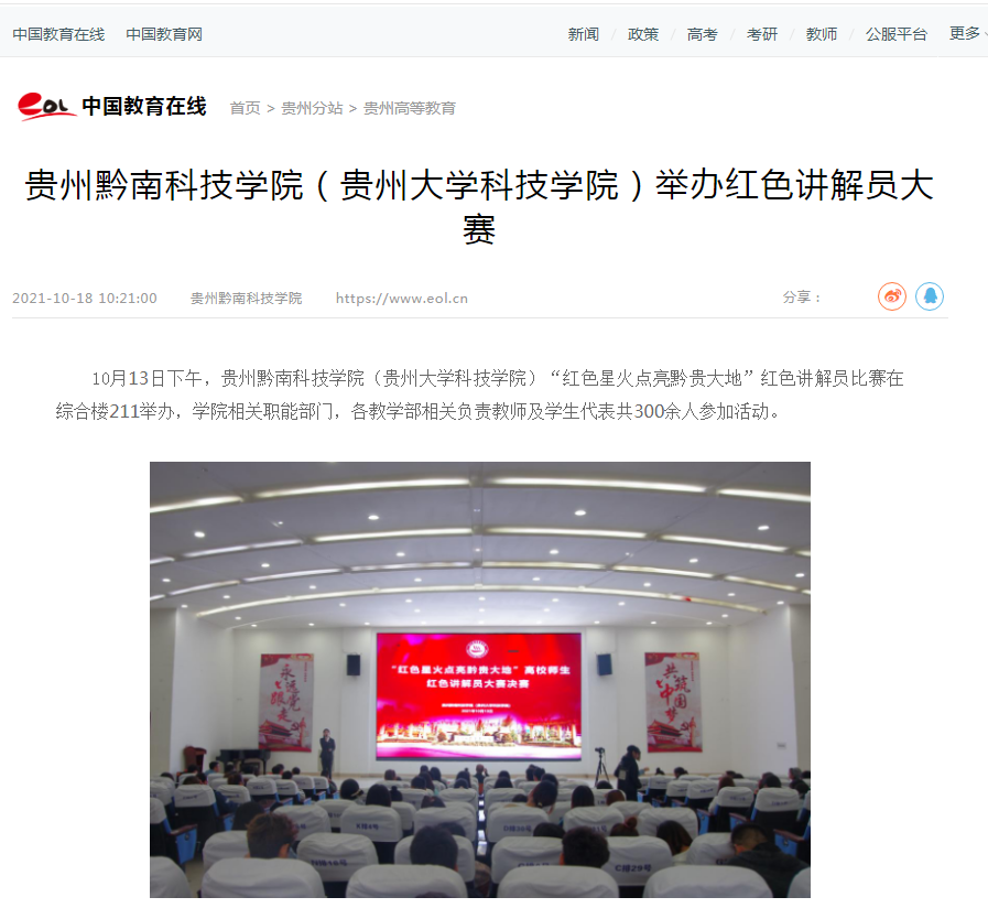 中国教育在线 | 贵州黔南科技学院(贵州大学科技学院)举办红色讲解员大赛