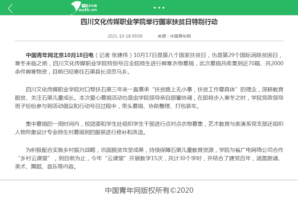 中国青年网 | 四川文化传媒职业学院举行国家扶贫日特别行动