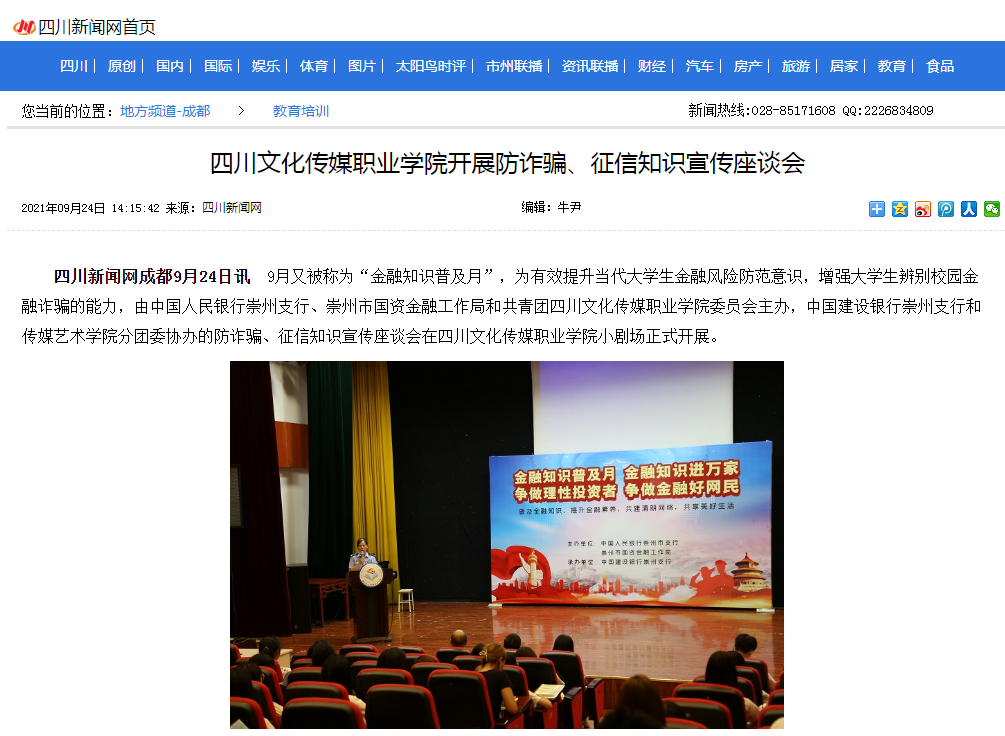 四川新闻网 | 四川文化传媒职业学院开展防诈骗、征信知识宣传座谈会