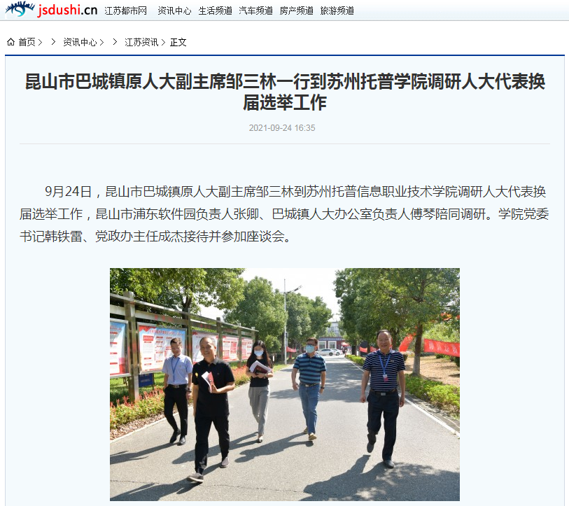 江苏都市网 | 昆山市巴城镇原人大副主席邹三林一行到苏州托普学院调研人大代表