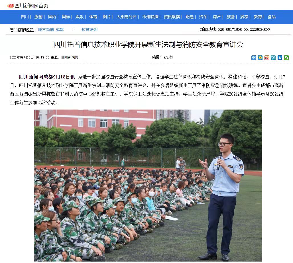 四川新闻网 | 四川托普信息技术职业学院开展新生法制与消防安全教育宣讲会