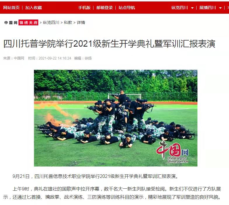 中国网锦绣天府 | 四川托普学院举行2021级新生开学典礼暨军训汇报表演