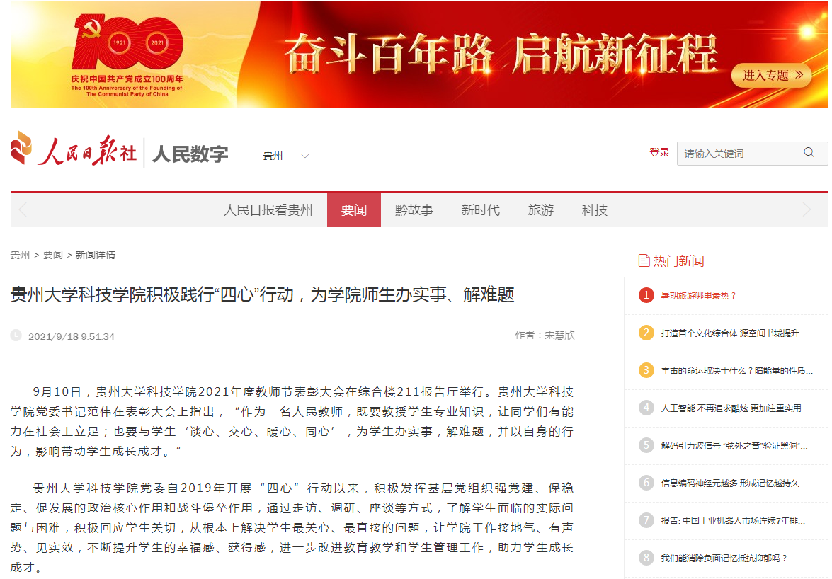 人民日报 | 贵州大学科技学院积极践行“四心”行动,为学院师生办实事、解难题