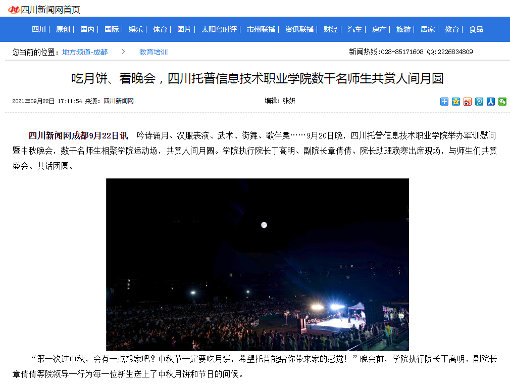 四川新闻网 | 吃月饼、看晚会,四川托普信息技术职业学院数千名师生共赏人间月圆