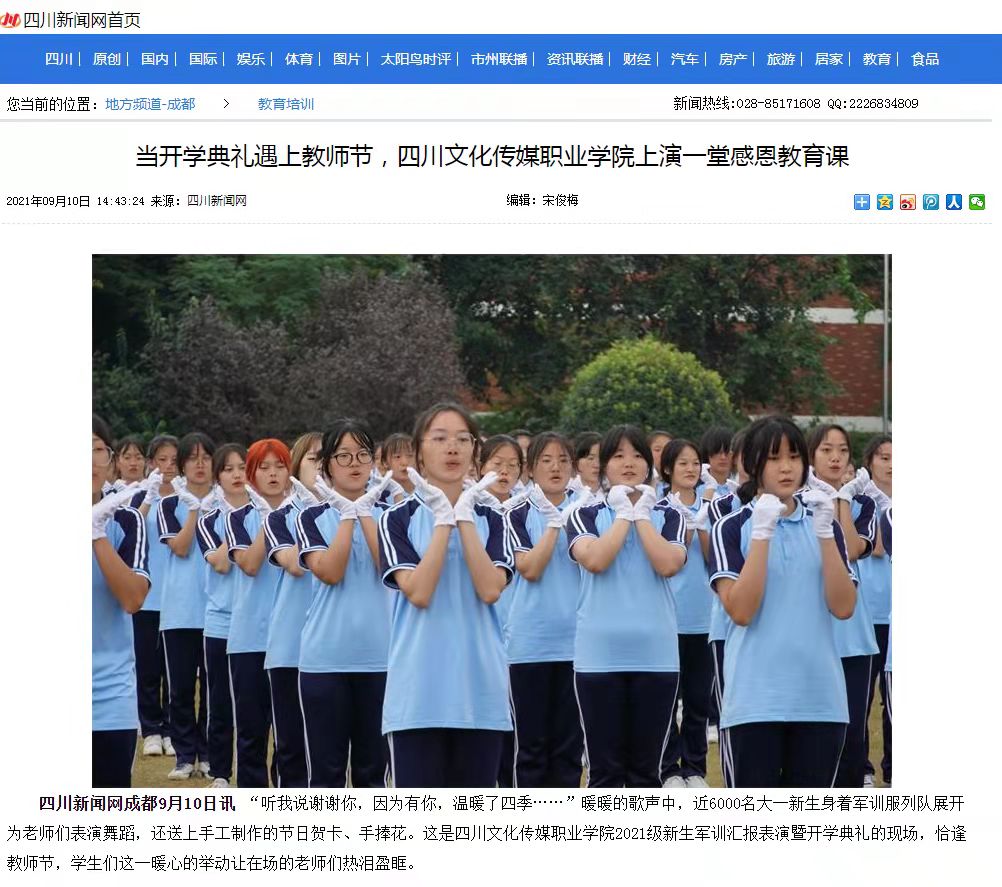 四川新闻网 | 当开学典礼遇上教师节,四川文化传媒职业学院上演一堂感恩教育课