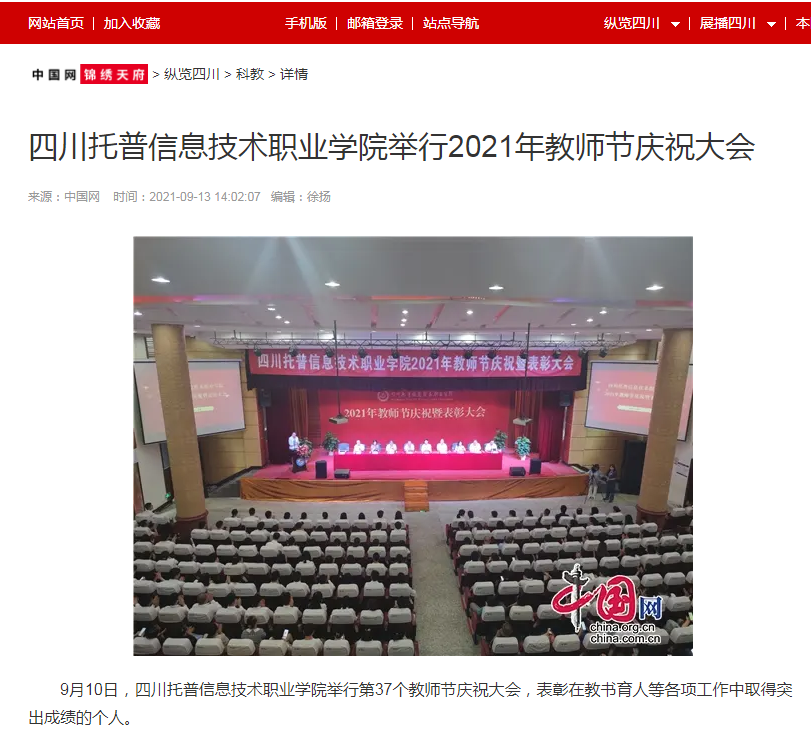 中国网锦绣天府 | 四川托普信息技术职业学院举行2021年教师节庆祝大会