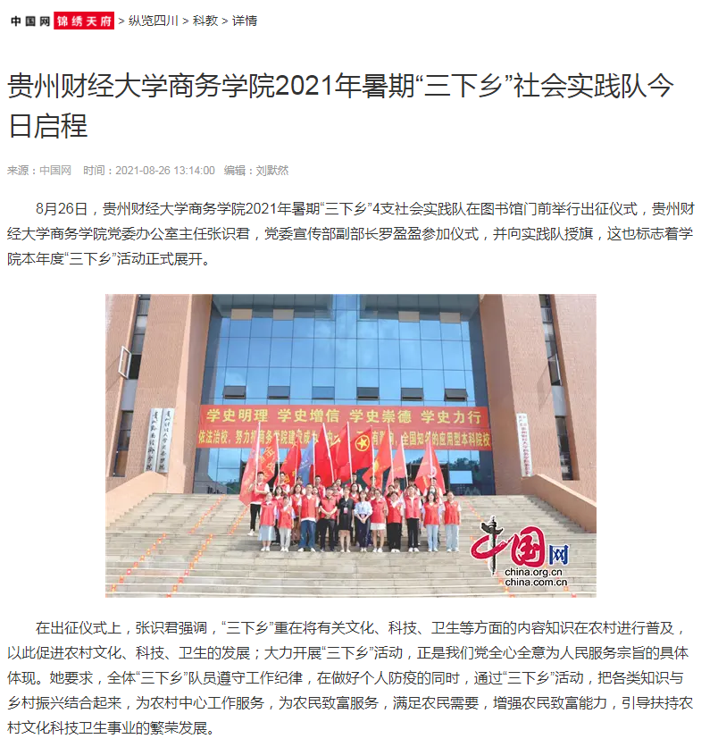 中国网锦绣天府 | 贵州财经大学商务学院2021年暑期“三下乡”社会实践队今日启程