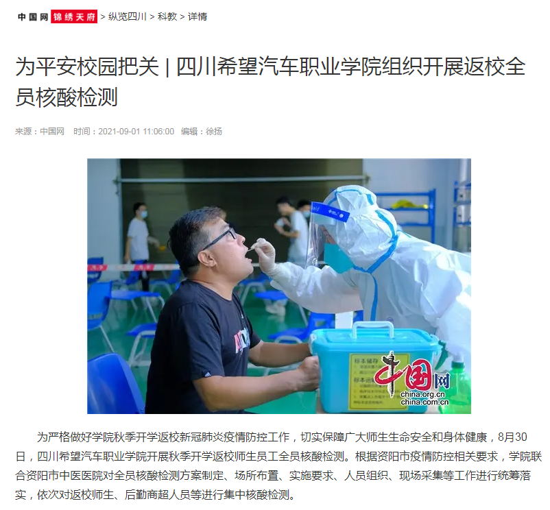 中国网锦绣天府 | 为平安校园把关 四川希望汽车职业学院组织开展返校全员核酸检测