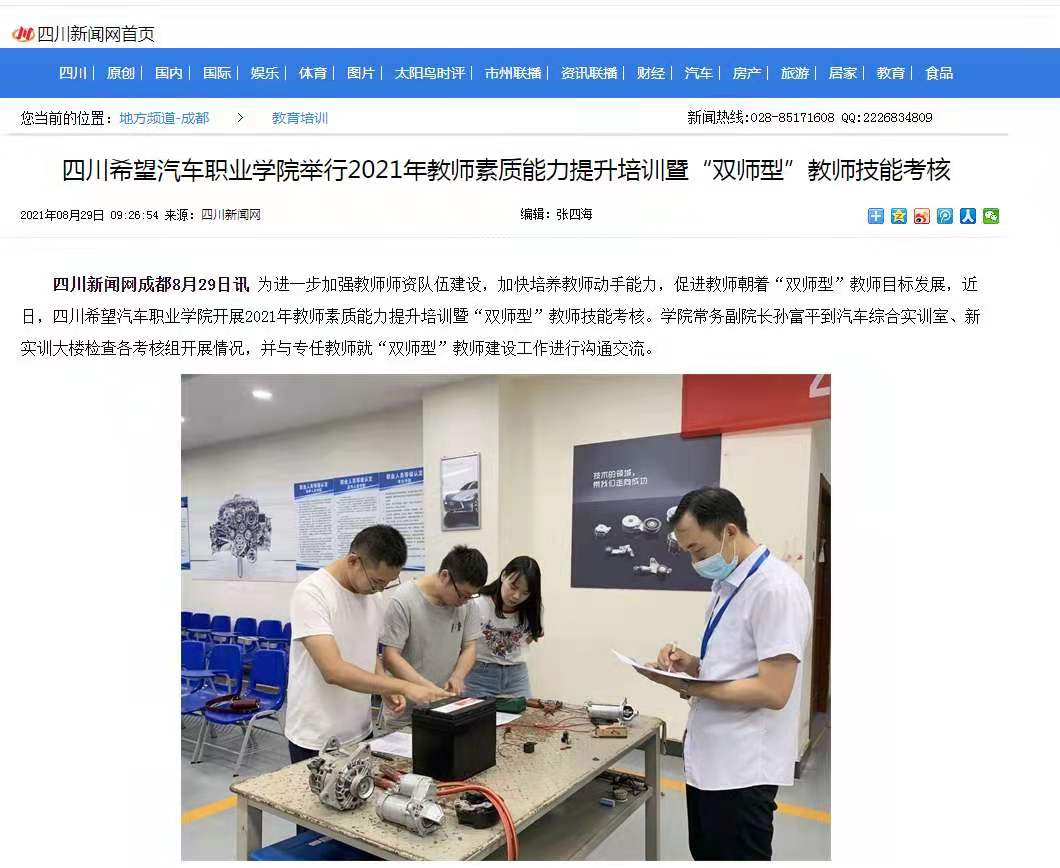 四川新闻网 | 四川希望汽车职业学院举行2021年教师素质能力提升培训暨“双师型”教师技能考核