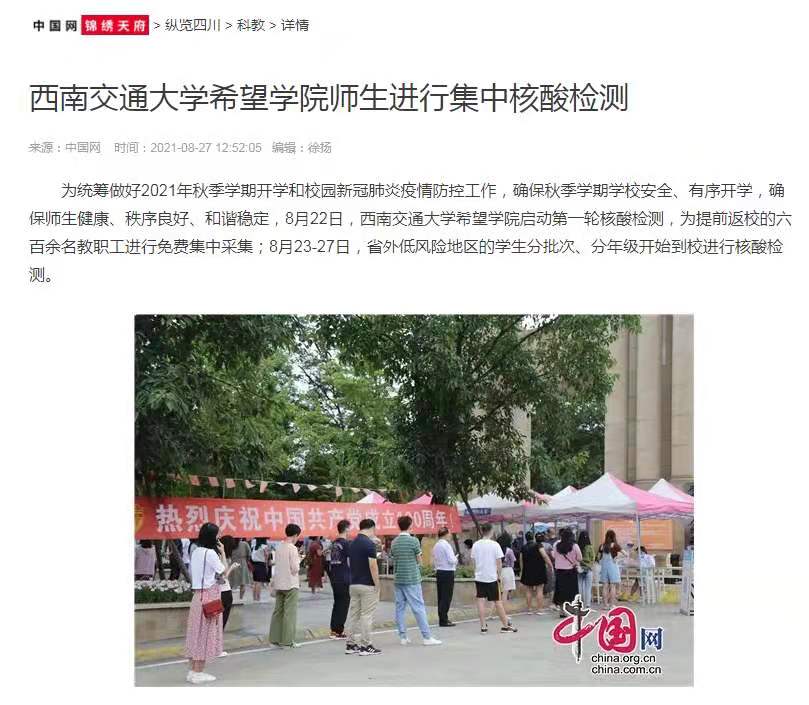 中国网锦绣天府 | 西南交通大学希望学院师生进行集中核酸检测