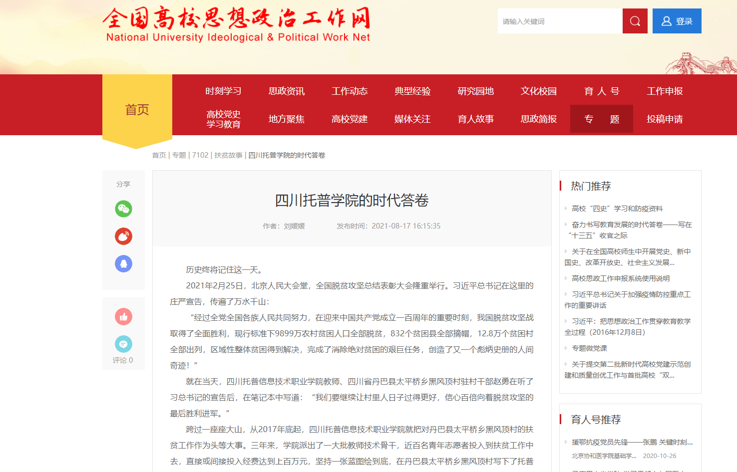全国高校思想政治工作网 | 四川托普信息技术职业学院的时代答卷