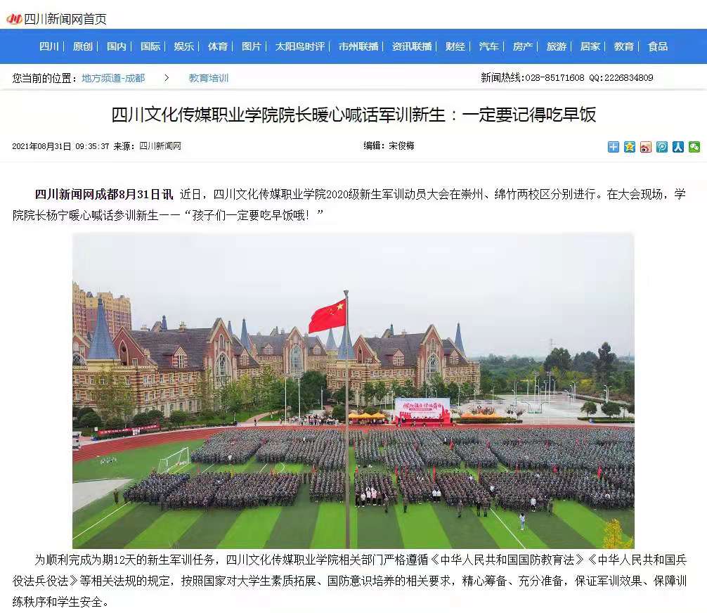 四川新闻网 | 四川文化传媒职业学院院长暖心喊话军训新生:一定要记得吃早饭