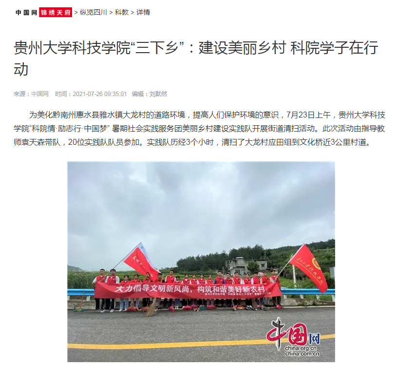 中国网锦绣天府 | 贵州大学科技学院“三下乡”:建设美丽乡村 科院学子在行动