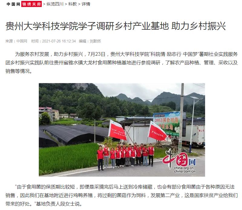 中国网锦绣天府 | 贵州大学科技学院学子调研乡村产业基地 助力乡村振兴