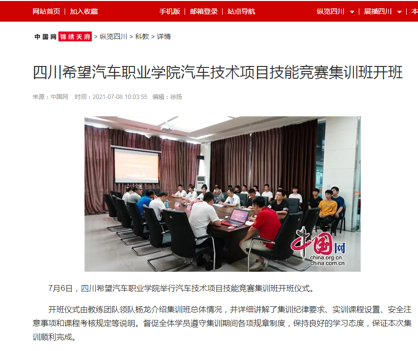 中国网锦绣天府 | 四川希望汽车职业学院汽车技术项目技能竞赛集训班开班