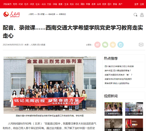 人民网四川频道|配音、录微课……西南交通大学希望学院党史学习教育走实走心