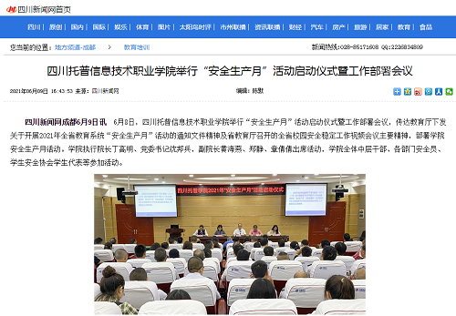 四川新闻网|四川托普信息技术职业学院举行“安全生产月”活动启动仪式暨工作部署会议
