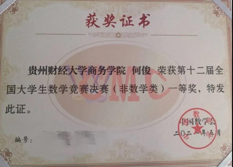 蝉联!贵州财经大学商务学院学子再获全国大学生数学竞赛一等奖!