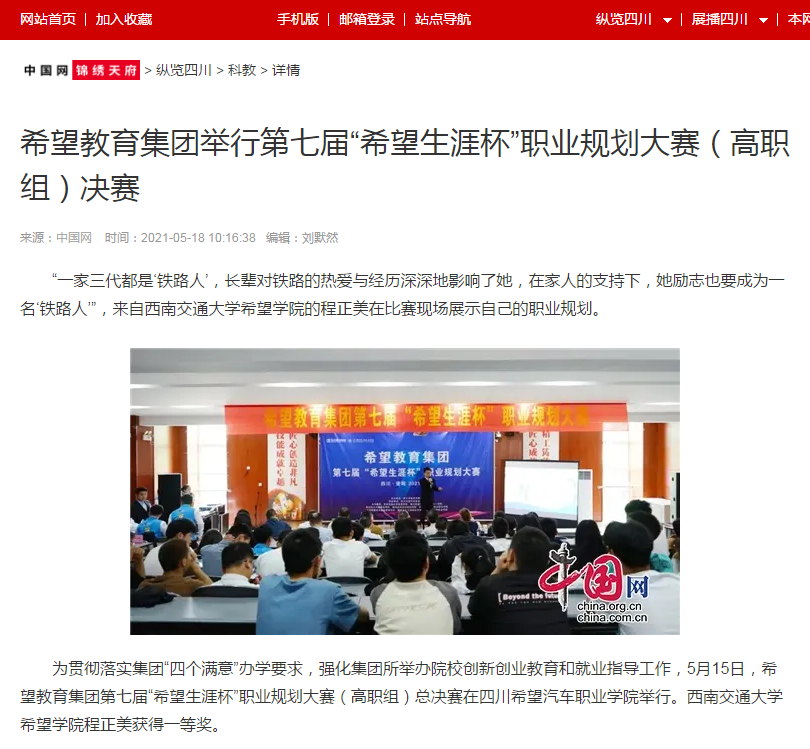 中国网锦绣天府|希望教育集团举行第七届“希望生涯杯”职业规划大赛(高职组)决赛