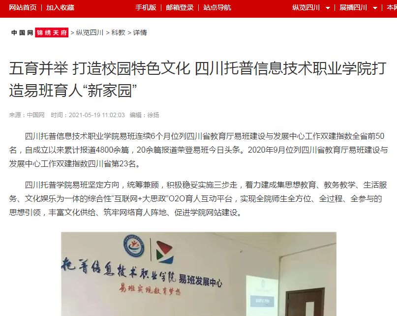 中国网锦绣天府|五育并举 打造校园特色文化 四川托普信息技术职业学院打造易班育人“新家园”