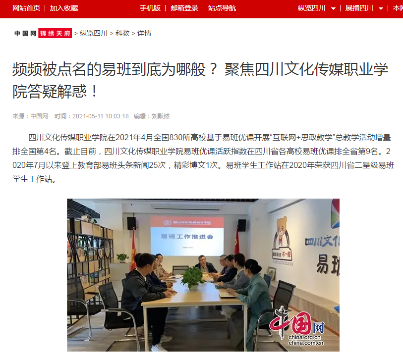 中国网锦秀天府|频频被点名的易班到底为哪般? 聚焦四川文化传媒职业学院答疑解惑!