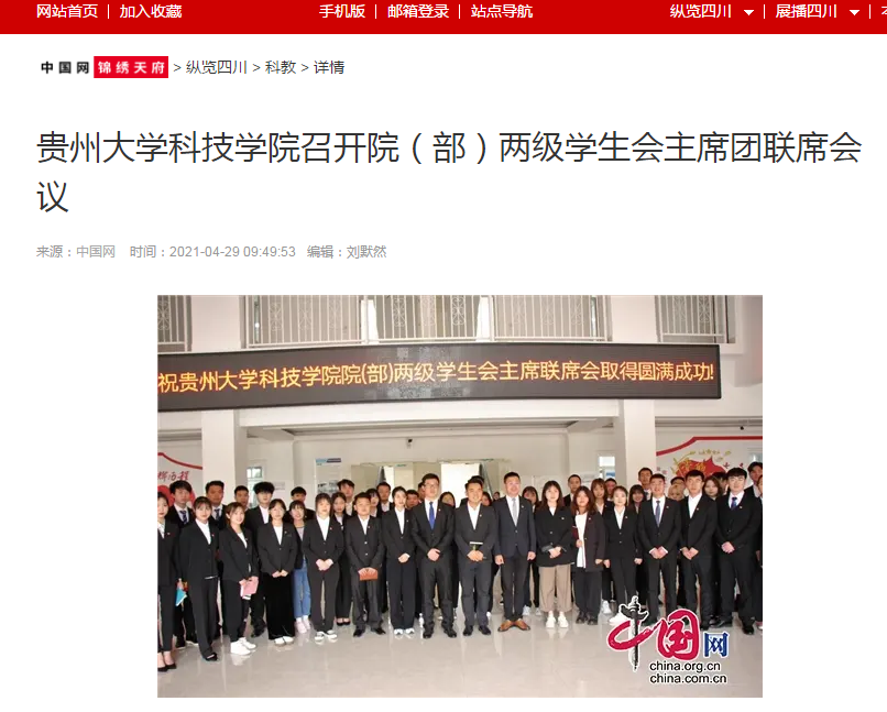 中国网锦秀天府|贵州大学科技学院召开院(部)两级学生会主席团联席会议