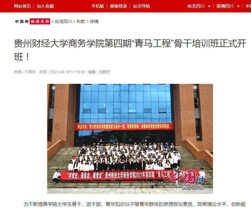 中国网锦秀天府|贵州财经大学商务学院第四期“青马工程”骨干培训班正式开班!