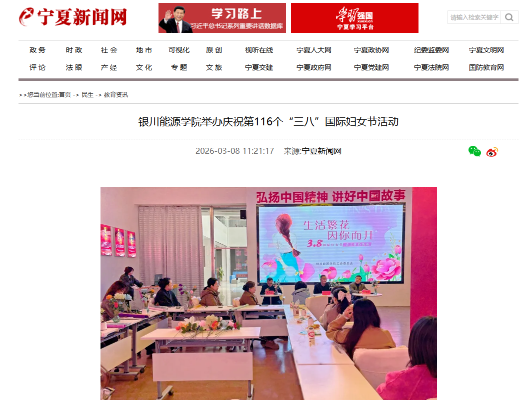 宁夏新闻网 | 银川能源学院举办庆祝第116个“三八”国际妇女节活动